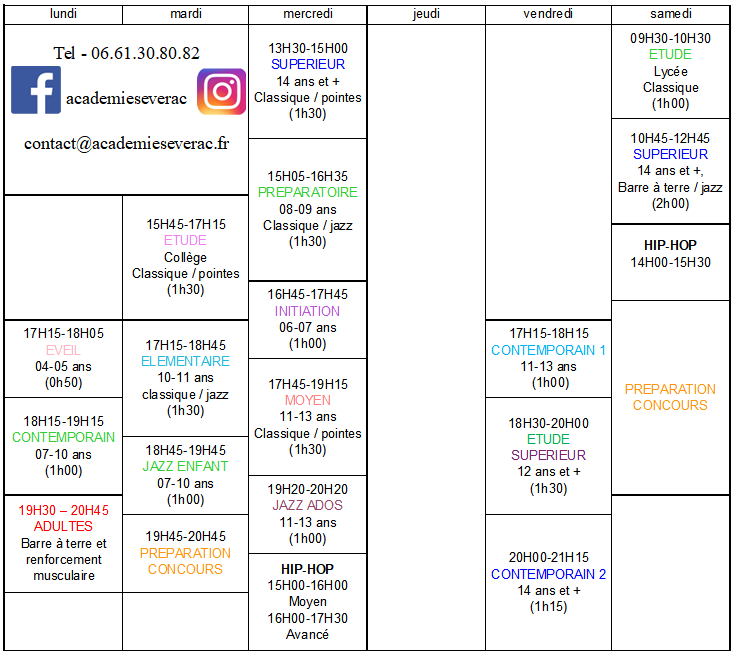 Les horaires des cours